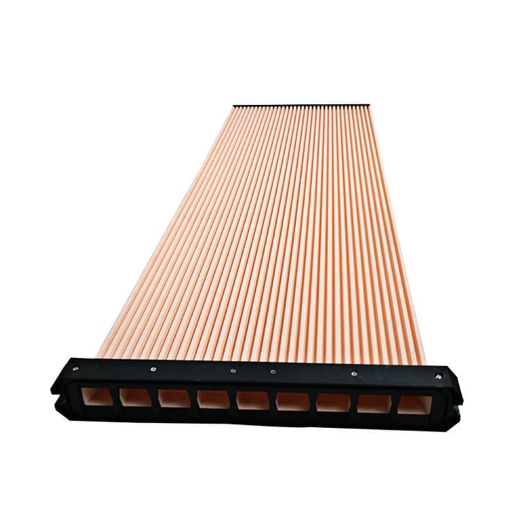 刚性的结构,使反吹气体更直接地作用在附着于过滤面粉体上,没有缓冲的存在,反吹效果更好,还采用了新一代增强型PTFE涂层,塑烧板表面更加致密、光滑,过滤精度更高,同时,显著改善了清灰能力。